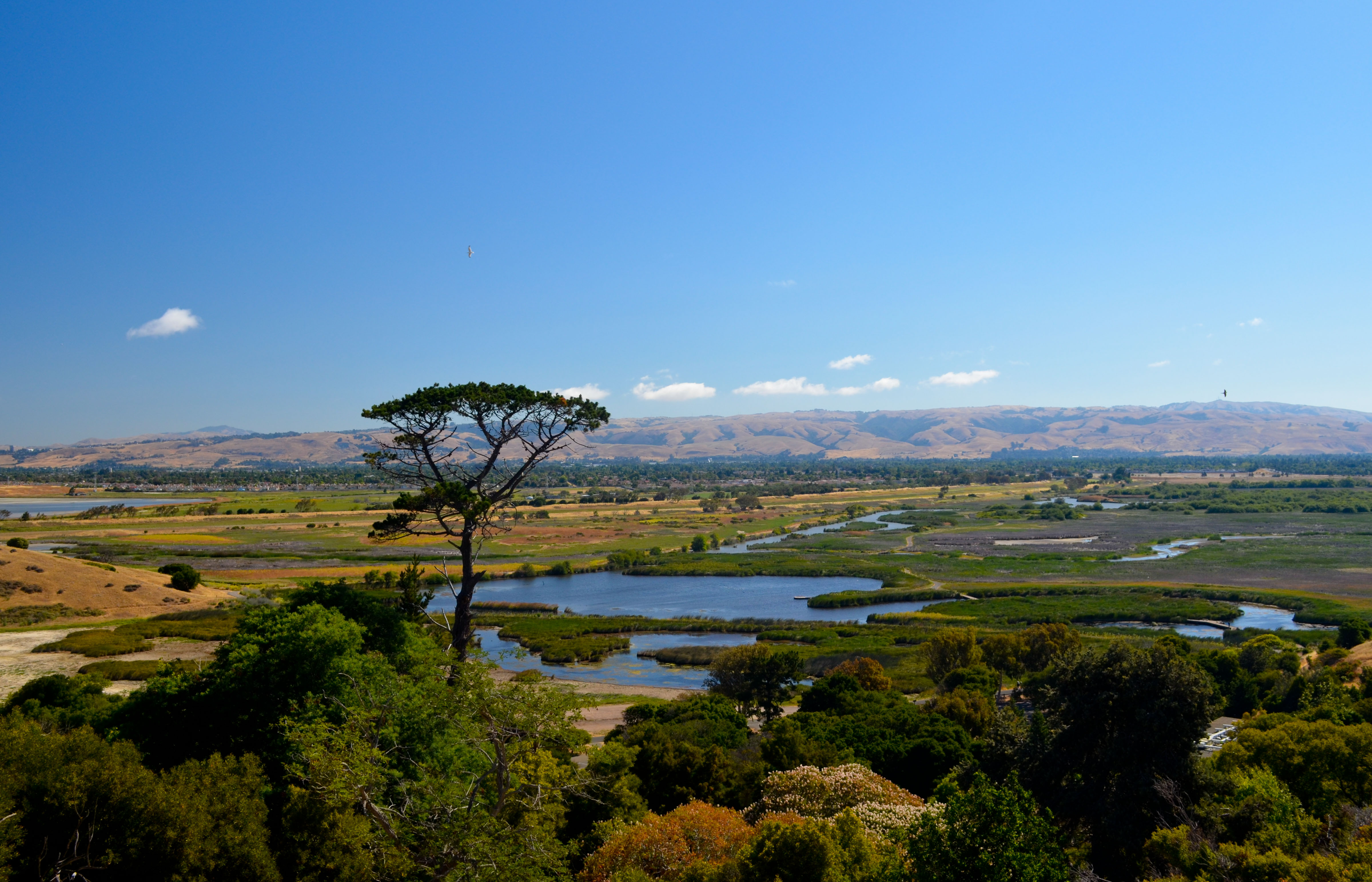 We summited the first hill – an intimidating 265 feet above sea level – within a few minutes of leaving our owl friends as well as the nice man who shared the moment with us. The views from the top extended in every direction and gave us the perfect vantage point to take in everything from the old salt ponds just below us to the coastal mountains across the bay and Mission Peak to the east. Coyote Hills has it all. Everything I bore witness to since May 31st – with the exception of the more urban landscapes – seemed to congregate in this one area. Just about every bird species I came to recognize over the past few weeks is here. While we hiked in from Ardenwood and Alameda Creek, the hills and wetlands are readily accessible from the visitor’s center in the center of the park.