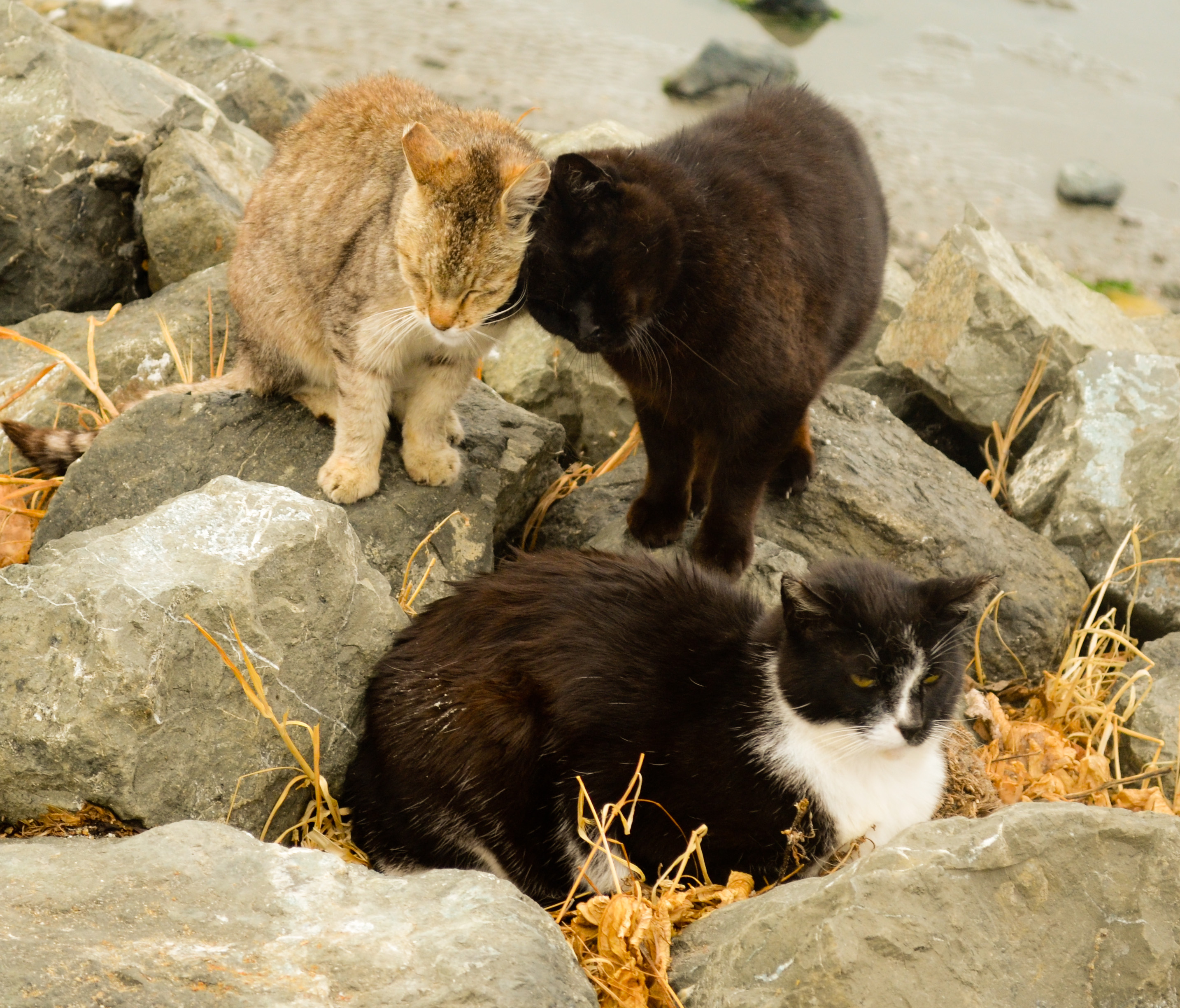 The image you see above is not just a couple of housecats loving each other. In fact, the scene was so touching, I had a hard time pulling myself away, to move on to my next mile. They were the leaders of what seemed to be a pride of five feral cats on the Bay Trail in Foster City. These two were not shy, indicative that humans feed them along the trail. They approached me as my own two childhood cats did when they wanted a scratch behind the ear; slowly and deeply purring. But these two, they were inseparable. It wasn’t until I was finished capturing a few frames that I noticed three other sets of eyes on me. They were all gazing at me from various perches along a twenty foot section of shoreline rocks. When I did notice them, these two, casually yet alertly, walked between me and the others. They were not aggressive or acting protectively but it was clear they were all together and they wanted me to know that.