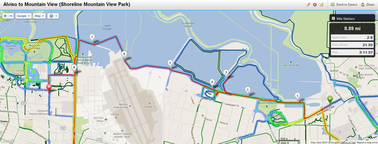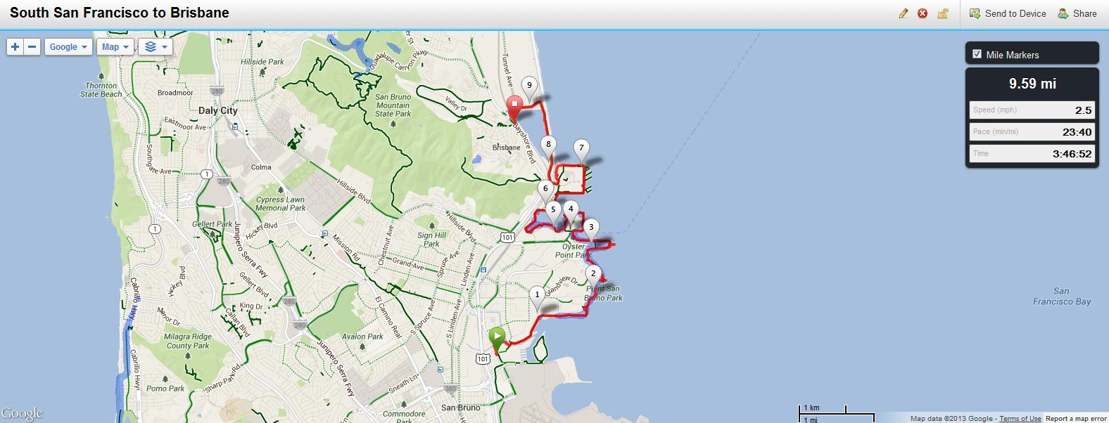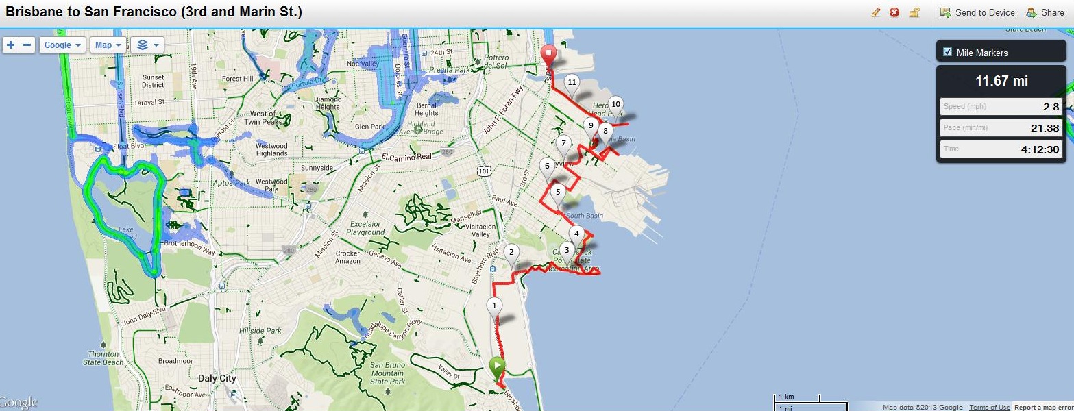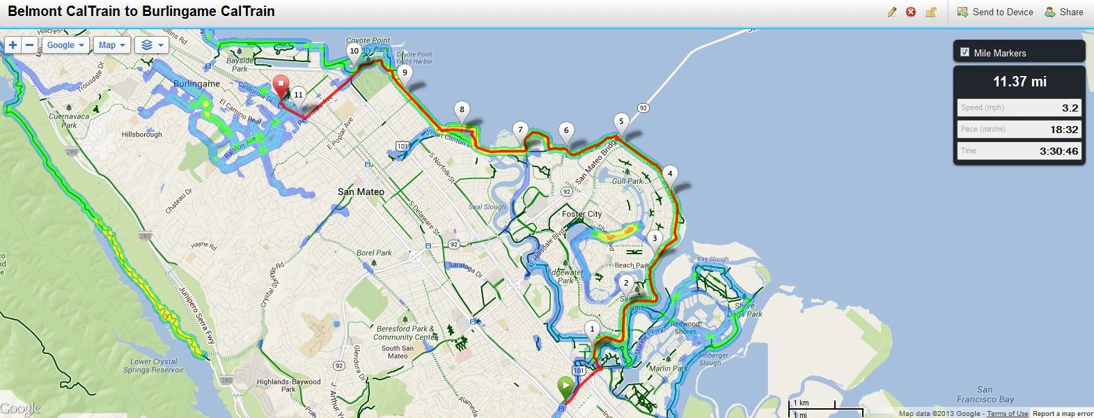 Transportation to start: San Francisco CalTrain to Burlingame CalTrain (Appoximately 1.3 mile walk to Bay Trail)